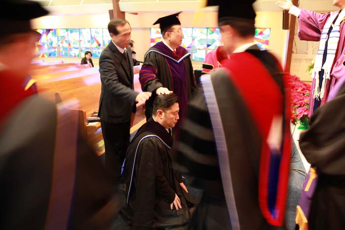 목사임직식 성의착의:*명예총장:신성능 박사 *설립총장:현 베드로 박사